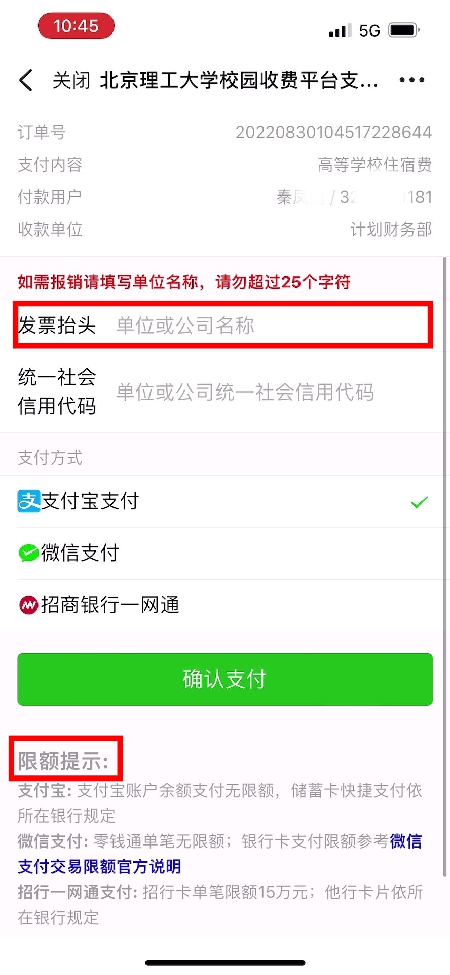 根據(jù)財(cái)政部要求,學(xué)生繳費(fèi)開具的票據(jù)“交款人”應(yīng)是學(xué)生本人姓名。如需在姓名后增加單位、公司名稱的,請(qǐng)?jiān)谥Ц队唵沃邪l(fā)票抬頭處填寫名稱。