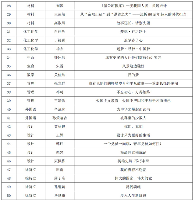 學校于2016年9月啟動北京理工大學“瞭望杯”優(yōu)秀網(wǎng)絡(luò)文章大賽(2016年第1期),共收到來自各學院學生作品近400篇,經(jīng)過評審組篩選、評委打分,最終按照評委打分遴選出前50名作品,進入本輪網(wǎng)絡(luò)環(huán)節(jié)評比,名單如下(排序與名次無關(guān)):