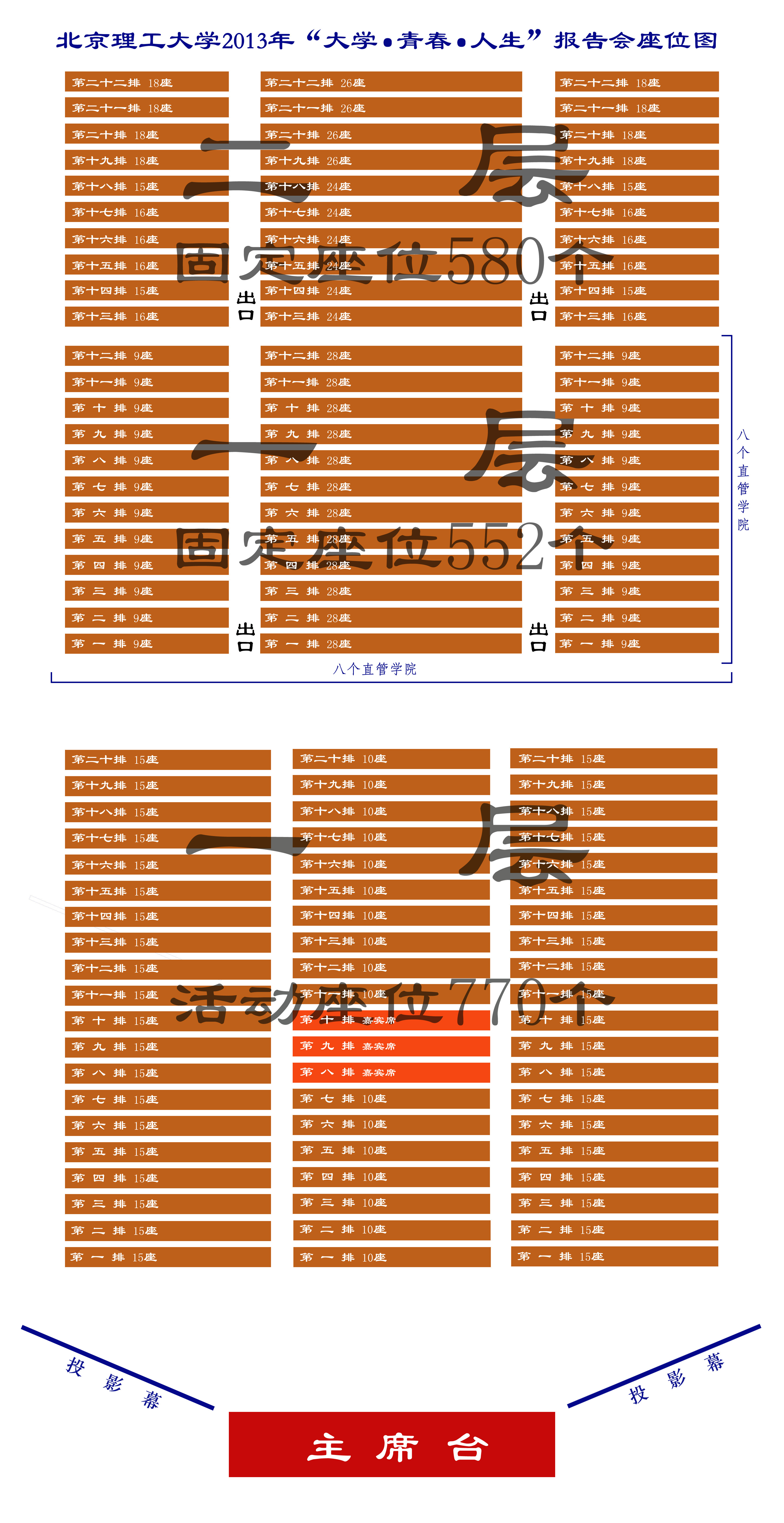 附件為座位安排表,一層固定座位區為八個直管學院的學生(現場有詳細學院分區圖并有專人引導),一層活動座位區及二層固定座位區為基礎教育學院的學生。八個直管學院的座位區現場將按學院劃分區域,基礎教育學院內部協調其場地位置和人數。