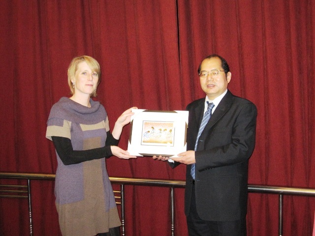 隨后,我校國際交流處處長王慶林代表學校歡迎Leigh-Ellen Keating女士一行的到來,并簡要回顧了兩校合作發(fā)展的歷程,十分感謝薩省大學對于鄧玉林院長的表彰,希望以此為契機繼續(xù)加深合作,為兩校的發(fā)展建設作出貢獻,實現(xiàn)雙贏。王慶林處長代表學校與Leigh-Ellen Keating女士互贈了紀念品。
