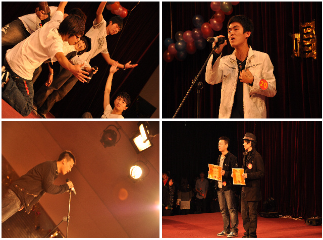 一段精彩的開場秀過后,整場比賽在法學院選手高瑋同學的《果汁分你一半》中正式拉開帷幕。接著,各院選手陸續登臺,激情澎湃,深情演繹:《我走以后》、《野百合也有春天》、《戀愛ing》、《我要我們在一起》、《Tonight I feel close to you》、《真實》等一首首經典曲目逐一上演。前兩個小節結束后,比賽已達到白熱化的階段,現場觀眾的氣氛也已達到高潮,特別是中間的現場互動環節,更是讓在座的親友團將自己的熱情發揮到了極致。