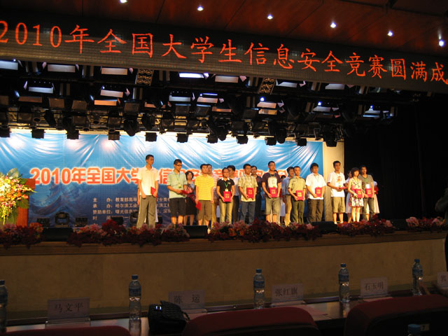 2010年全國大學生信息安全競賽是由在教育部高等教育司、工業和信息化部信息安全協調司的指導下,由教育部高等學校信息安全類專業教學指導委員會主辦的國家級大學生創新競賽。本次大賽從報名到決賽歷時5個月,參加本次比賽的共有來自全國90個高校的514支隊伍。通過初賽、復賽的篩選,最終只有110支競賽隊進入決賽,決賽于2010年8月14日至2010年8月16日在哈爾濱工業大學舉辦,8月17日揭開最終懸念,最終評選出了12支全國一等獎,25支全國二等獎。