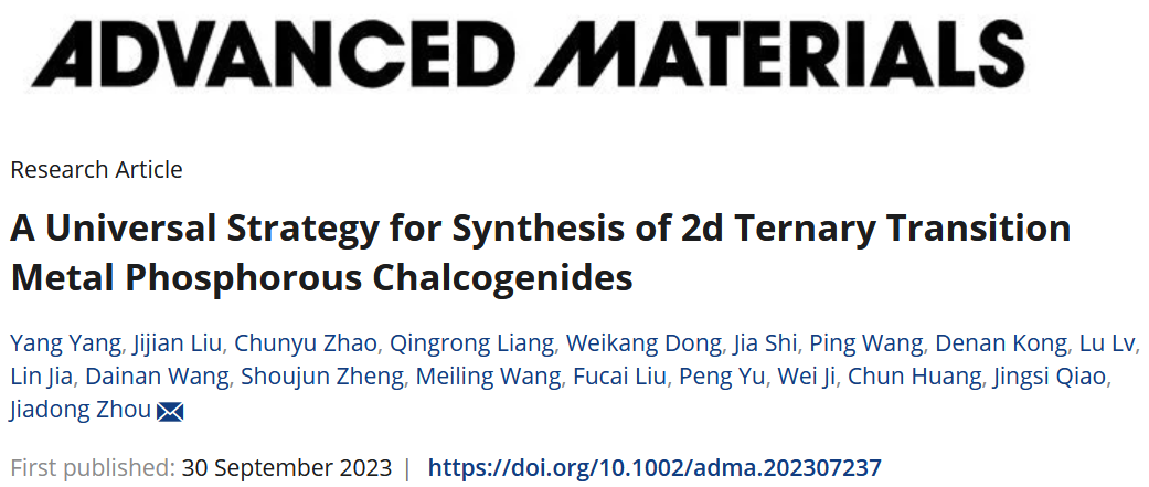 北理工團隊在二維過渡金屬磷硫化合物可控合成方面取得重要進展