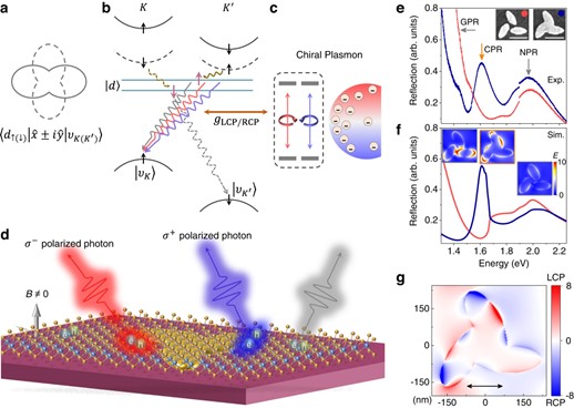 圖1. 手性等離激元納腔對谷對稱性缺失的量子發射體(QE)的偏振調控過程。