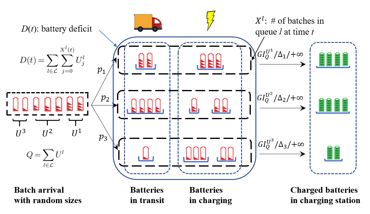 發(fā)展新能源汽車(chē)是我國(guó)從汽車(chē)大國(guó)邁向汽車(chē)強(qiáng)國(guó)的必由之路,是應(yīng)對(duì)氣候變化、推動(dòng)綠色發(fā)展的戰(zhàn)略舉措。換電模式的電動(dòng)汽車(chē)具有補(bǔ)能時(shí)間短、電池充電安全性高等優(yōu)勢(shì),具有廣闊的應(yīng)用前景。然而受限于交通出行需求與城市電網(wǎng)供電能力的不平衡和波動(dòng)性,目前單站式“分散充電、分散換電”的運(yùn)營(yíng)模式面臨巨大挑戰(zhàn)。張玉利特別研究員團(tuán)隊(duì)與合作者針對(duì)制約換電模式電動(dòng)汽車(chē)發(fā)展的瓶頸難題,在運(yùn)營(yíng)模式、模型方法和算法設(shè)計(jì)等方面開(kāi)展一系列創(chuàng)新性工作。首先,研究團(tuán)隊(duì)提出“集中充電、分散換電”的充換電柔性服務(wù)網(wǎng)絡(luò)運(yùn)營(yíng)新模式。通過(guò)車(chē)電分離、電網(wǎng)交通網(wǎng)解耦,既能有效緩解城市中心電網(wǎng)容量不足、場(chǎng)地成本的運(yùn)營(yíng)難題,又能有效解決電動(dòng)汽車(chē)司機(jī)排隊(duì)等待時(shí)間長(zhǎng)、服務(wù)體驗(yàn)差的問(wèn)題。其次,針對(duì)該運(yùn)營(yíng)模式,提出了基于隊(duì)列分解思想的一般批量達(dá)到、一般隨機(jī)服務(wù)時(shí)間、足夠服務(wù)臺(tái)的排隊(duì)論分析方法,并建立了考慮動(dòng)力電池充-換-儲(chǔ)-運(yùn)循環(huán)過(guò)程的兩級(jí)網(wǎng)絡(luò)選址-庫(kù)存模型。最后,針對(duì)該非凸非凹離散優(yōu)化模型的特點(diǎn),提出了基于次模性(Submodularity)的約束生成-參數(shù)搜索(Parametric Search) 精確算法。其計(jì)算速度比現(xiàn)有算法和主流商業(yè)求解器快1000倍以上。該研究成果推動(dòng)了隨機(jī)排隊(duì)系統(tǒng)分析理論的發(fā)展,為企業(yè)提供了新的選址和庫(kù)存管理決策工具。依托新能源汽車(chē)國(guó)家監(jiān)測(cè)與管理中心平臺(tái)和出租車(chē)運(yùn)營(yíng)數(shù)據(jù)的計(jì)算結(jié)果表明,隨著換電出租車(chē)的逐步推廣,采用“集中充電、分散換電”模式的方案可將日常運(yùn)營(yíng)成本和電池?cái)?shù)量降低30%以上,具有良好的應(yīng)用前景。該成果受到國(guó)家自然科學(xué)基金項(xiàng)目(71871023,72271029,72061127001)等項(xiàng)目資助。