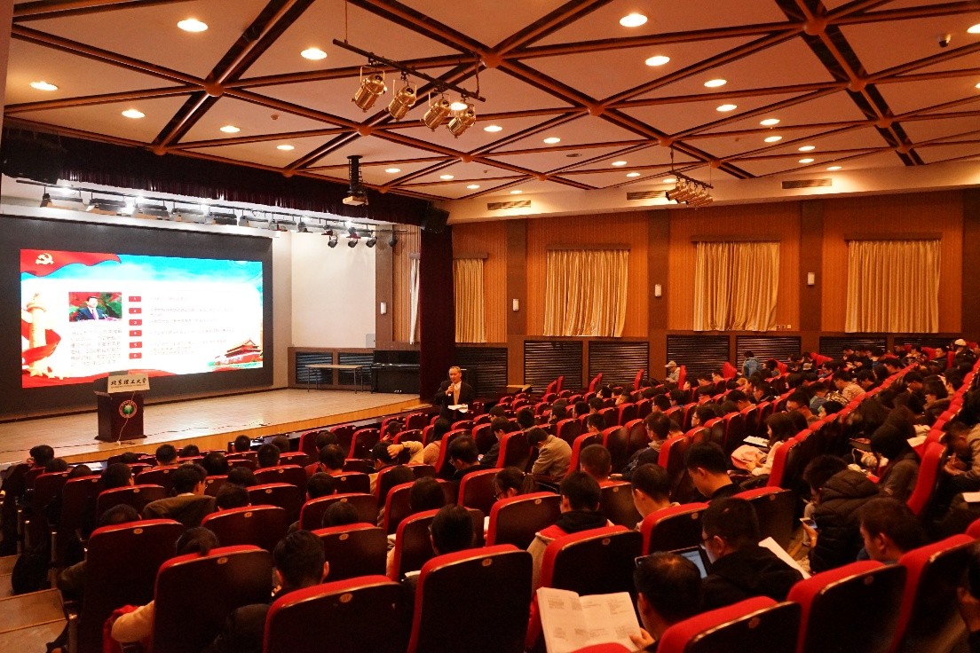 2017年11月11日上午9點在七號樓報告廳,軟件學(xué)院黨委書記、學(xué)校黨的十九大精神宣講團(tuán)成員曲大成為軟件學(xué)院學(xué)生黨員和積極分子解讀了十九大精神,曲書記從如何解讀十九大報告出發(fā),給大家從“過去五年的工作和歷史性變革”、“新時代中國共產(chǎn)黨的歷史使命”“ 習(xí)近平新時代中國特色社會主義思想”、“決勝全面建成小康社會,開啟全面建設(shè)社會主義現(xiàn)代化國家新征程”等角度全面講解了十九大報告,最后引出了十九大報告中習(xí)近平總書記對于青年人的殷切希望,曲書記告誡青年學(xué)生要牢記總書記囑托,將自身發(fā)展與中國共產(chǎn)黨事業(yè)、國家和民族事業(yè)融為一體,提高政治站位,樹立強(qiáng)大的歷史自豪感和發(fā)展責(zé)任感,結(jié)合軟件專業(yè),勇敢實踐,牢記兩個一百年歷史重任,發(fā)揮軟件專業(yè)特長,擔(dān)負(fù)起歷史使命。