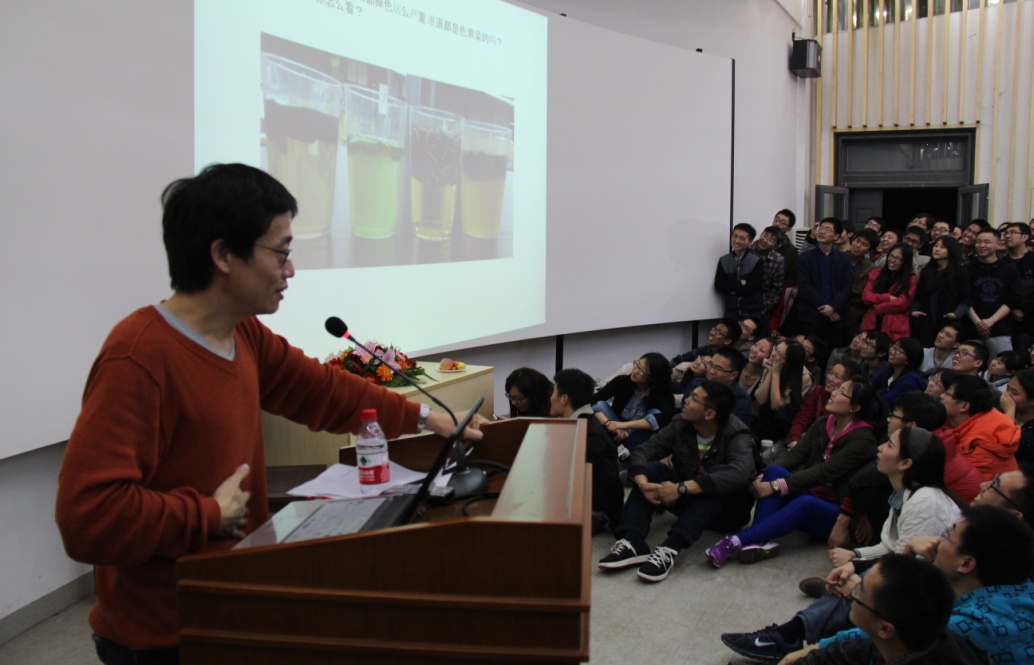 接下來的“黃西的PPT”讓同學(xué)們體會(huì)到了黃西精妙的思維和超凡的口才。隨著講座的進(jìn)行,笑聲、叫好聲從不間斷。最后的互動(dòng)環(huán)節(jié)更是將本次講座推向高潮,同學(xué)們都爭(zhēng)相舉手提問,黃西也一一作了精辟巧妙的回答。更有幾位現(xiàn)場(chǎng)觀眾,展示了自己的脫口秀。