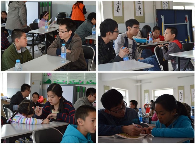 一個多小時的車程沒有讓志愿者們有一絲的疲憊與懈怠,大家懷揣著滿滿的愛心與熱情走進金頂街社區辦公樓,見到了早已等在那里的孩子們。志愿者與街區的孩子們結成對子,分別就坐于早已布置好的教室里,進行一對一的輔導與幫助。我們的志愿者分為幾組,擅長英語的同學,幫助需要練習英語口語的孩子;數理方面成績不錯的同學,專門幫助初高中學生解決數理難題。整個活動在輕松愉快的氛圍中進行,在志愿者們的耐心幫助下,孩子們解決了不少課業上的問題,臉上都露出了燦爛的笑容。