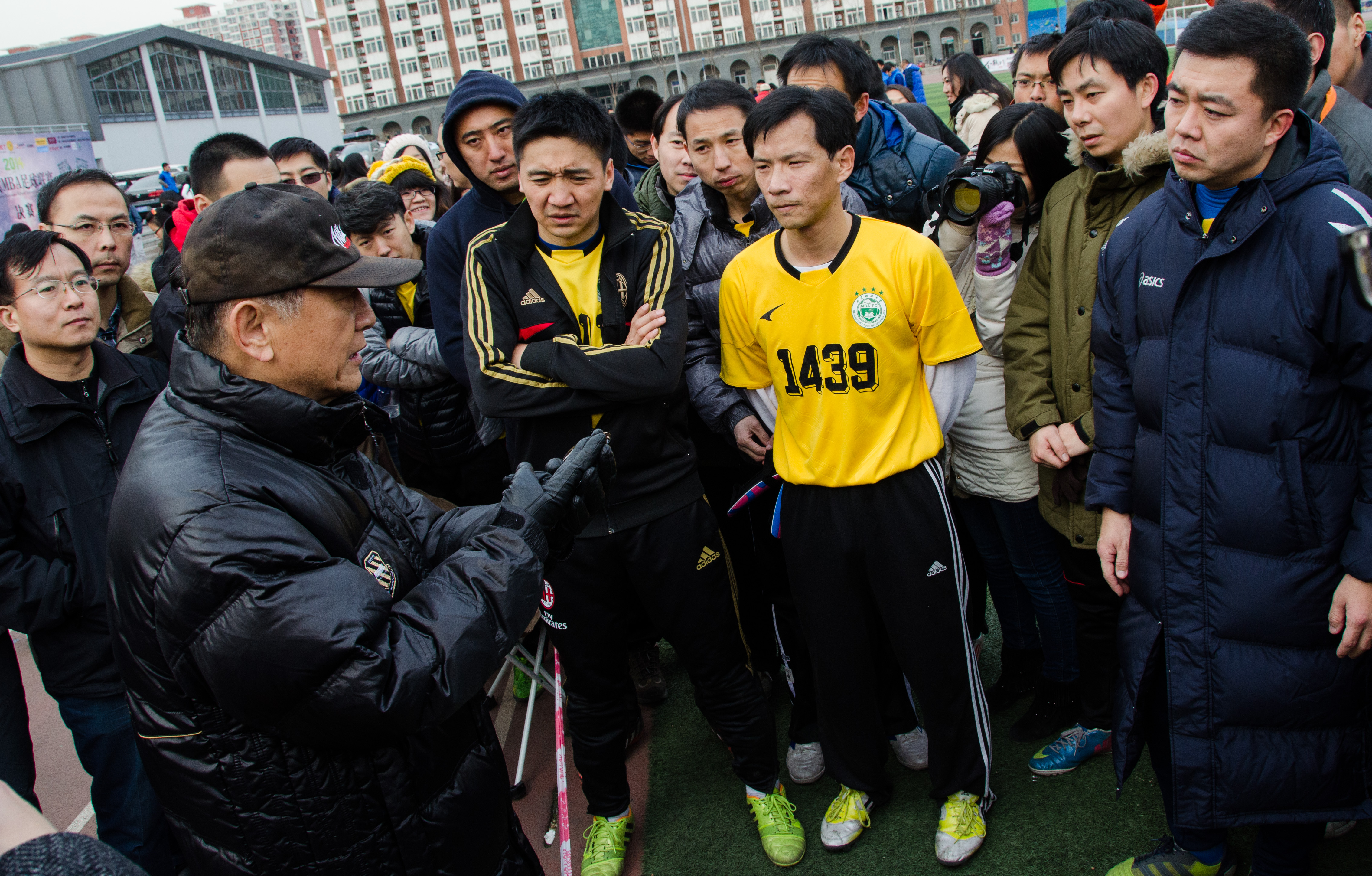 京津冀MBA足球聯賽是目前中國學歷最高、范圍最廣的比賽,更是超前開展起來的京津冀文化體育協同發展項目。第九屆聯賽由中國農業大學MBA教育中心主辦,共有來自北京、天津、河北的27所商學院參加。由“塔讀文學”全力支持的北理工MBA足球俱樂部以全勝戰績從小組出線后,連續擊敗北京郵電大學、北大光華、北京師范大學等名校強隊,最終迎來了首次闖入決賽的東道主——中國農業大學MBA足球隊。金指導不顧天氣寒冷,親臨賽場為北理工學子指導,為MBA足球聯賽喝彩,極大地鼓舞了廣大隊員的士氣,雙方聯袂奉獻了一場精彩的高水平比賽,展現了MBA人高水平、高素質的競技狀態和道德風貌。賽后,金指為冠軍得主——我校MBA足球隊頒發了冠軍獎杯,并滿足了現場來自京津冀的數百名研究生球員和球迷的合影要求,為助推校園足球和高學歷人群的競技活動而不遺余力。