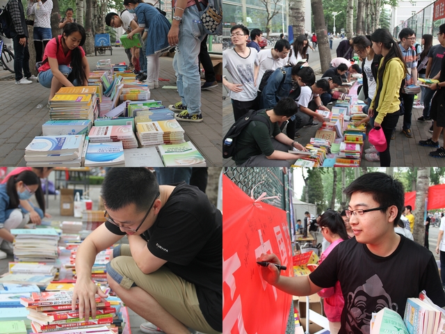 4月28日,愛心書籍贈送活動在中關村校區新食堂北側活動場地如期舉行,活動之前,宇航、光電、信息、自動化和化工等5個學院的勵志中隊隊員將事先整理好的書籍運送到活動場地,分類擺放整齊。活動中,在同學們認真挑選書籍的同時,各學院隊員向前來領取書籍的同學介紹不同學院不同專業所需的書籍,保證物盡其用,讓前來領取書籍的同學都能領取對自己最有幫助的書籍。領取書籍的學生在橫幅上記錄下自己的名字,表達了對捐贈書籍同學的感謝。在短短兩個小時內,路過的同學及老師,包括食堂工作的阿姨共計200余人前來領取書籍,贈書總數近1200冊。