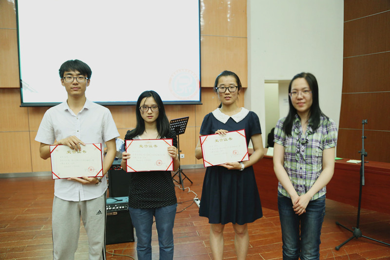 最終,陳玉竹、張鄭和陸天和同學獲得了三等獎,黎瓊、孫航同學獲得二等獎,何鑫同學榮獲本次大賽一等獎,評委們?yōu)樗麄冾C發(fā)了證書。
