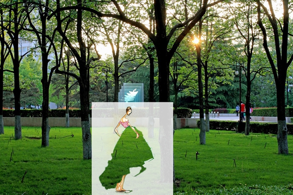 都說一日之計(jì)在于晨,嫩綠的草地,初升的太陽,明媚的女子拖著長長的綠色裙擺,緩步輕走。