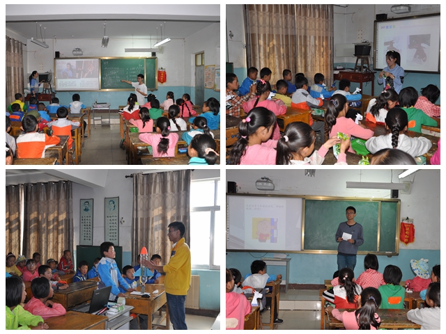 在之后的支教課程中,實踐團成員為同學們帶來了音樂樂理與電子琴課程,讓同學們在跳躍的音符中感受音樂的魅力;飲料課程,讓同學們在了解飲料配置方法及動手配置的過程中,正確辯證地認識飲料中的各個成分;水火箭課程,為同學們講解了火箭的發(fā)展史、火箭及水火箭的組成與運行原理,并通過一個下午的小組動手制作水火箭和發(fā)射過程,讓同學們進一步感受到火箭的威力與科技的力量;探索科技課程,為同學們展示了未來世界可能的樣子及目前各領域最先進的科學技術,讓同學們通過上臺體驗立體照片,觀看3D電影等親身參與的形式,融入科技之中,在展示先進科技的同時,又講述了濫用科技對自然的危害;視錯覺課程則通過旋轉的舞者引出眼睛是如何欺騙我們的,激發(fā)了同學們深入探索的興趣,并通過逐步引導與講解、動手折紙等方式讓同學們真正明白眼見也不一定為實的原理;正值反法西斯戰(zhàn)爭勝利七十周年,實踐團精心安排了反法西斯的相關課程,通過追憶那段艱苦的抗戰(zhàn)歷史,讓同學們明白落后就要挨打的道理,更加珍惜今天來之不易的幸福生活,熱愛和平,壯大祖國;五子棋課程是實踐團創(chuàng)新的棋類益智課程,通過簡單普及的五子棋,講述下棋方式中的大智慧,讓每個同學都參與其中感受動腦的快樂;尋槍作為紅色經典課程,為同學們生動風趣地講述了槍的發(fā)展史及發(fā)射原理,展示了最先進的槍械科技,同時為同學們介紹了北京理工大學的槍王朵英賢院士,得到了同學們的熱烈反響。