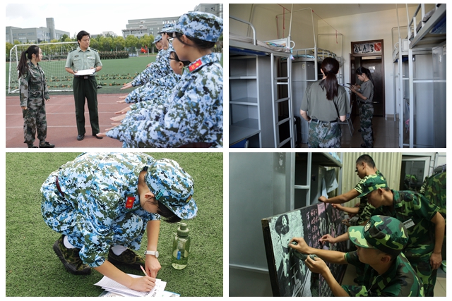 軍訓期間,每天白天安排軍事技能訓練,晚上由連隊指導員組織開展形式多樣的政教活動,有入學教育講座、文體活動、連隊評比等。為了讓新生們更好更快地從高中時期過渡到大學階段,9月16日、19日軍訓旅分別開展了主題為“身心健康,卓越成長”、“如何利用圖書館”和“健康生活,快樂成長”的三場新生入學教育講座,引導學員們加強體育鍛煉、強健體魄的意識,學會合理高效地利用圖書館資源,幫助學員盡快地適應大學的學習生活,對于大學中可能遇到的問題,直面困難,妥善解決。軍訓期間正值學校建校75周年校慶,各連隊陸續組織學員們進行了校史校情教育,通過觀看校史紀錄片《紅色征途》,參觀校史長廊、觀看校慶晚會、撰寫校慶寄語等形式,增進了新生對學校歷史的了解,加強了同學們對校情、校風的認識。
