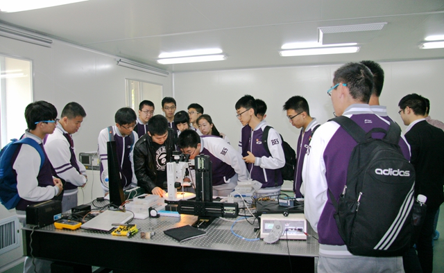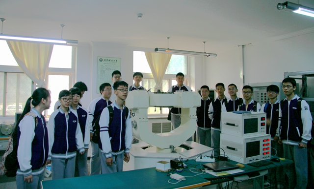 師生們首先來到北京理工大學導航制導與控制教育部工程中心,在自動化學院石永生老師的帶領下參觀了慣性器件與系統測試實驗室。慣性制導技術是利用慣性原理控制和導引運載火箭飛向目標的技術,在航空航天領域有著非常重要的應用。石永生老師詳細地給同學們講解了慣性制導技術的原理,介紹了各種實驗器材的功能,其中包括大型的陀螺儀、轉臺等專用設備。通過演示設備,深入淺出地回答同學們的問題,使同學們受益匪淺。
