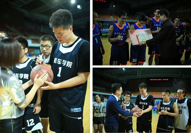 比賽結束后,兩隊隊員在籃球上簽名留念,校團委書記肖雄老師為獲獎隊伍頒發獎杯和證書。