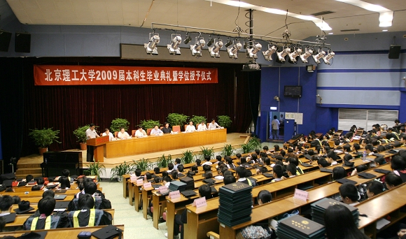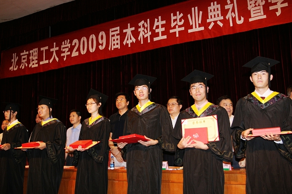 畢業(yè)典禮在莊嚴(yán)的國歌聲中開始。黨委副書記、副校長楊賓宣讀了《準(zhǔn)予畢業(yè)和授予學(xué)士學(xué)位的決定及名單》;副校長李和章宣讀了《2009屆優(yōu)秀畢業(yè)生表彰決定及名單》、《關(guān)于2009年北京理工大學(xué)德育答辯工作優(yōu)秀組織集體獎(jiǎng)、優(yōu)秀組織個(gè)人獎(jiǎng)、優(yōu)秀論文獎(jiǎng)的表彰決定》。出席典禮的校領(lǐng)導(dǎo)分別為優(yōu)秀畢業(yè)生代表、德育答辯優(yōu)秀獎(jiǎng)代表頒發(fā)了榮譽(yù)證書。