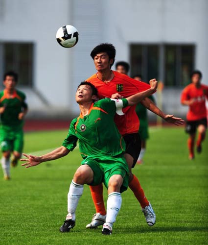 丟掉一球的北京理工在場面上并沒有很大的改觀。第21分鐘,立功心切的北理工外援埃米爾在禁區內爭頂沖撞日之泉隊門將李偉軍后,沒聽到主裁判哨聲依然將球打進,幸好當值主裁手下留情只是對此做了口頭警告。反觀日之泉隊則打得非常有章法,兩邊路的李健、譚賓涼、王超等隊員不停地利用良好的技術沖擊著北理工的防線。