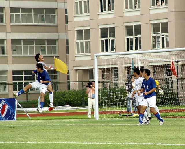 9月5日下午4點,第九屆大運會男子足球決賽在東華大學體育場進行。