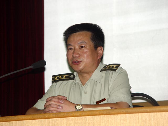 炮兵指揮學(xué)院軍訓(xùn)旅政委藺承做了“學(xué)英雄事跡,走英雄道路”的精彩報告
