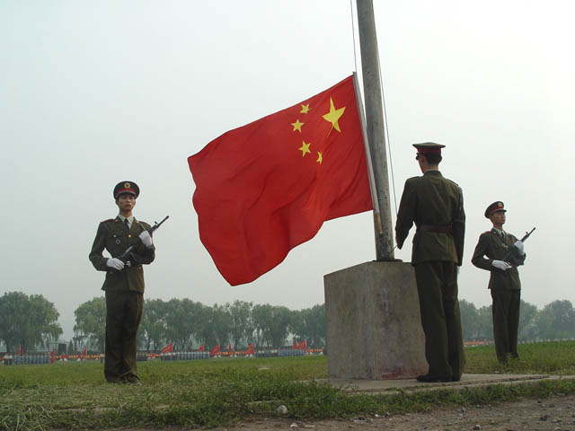 全體起立,奏國(guó)歌、升國(guó)旗。