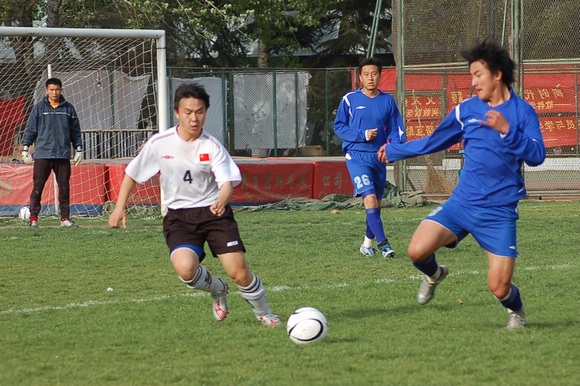 4月24日下午,為迎接即將開戰的全國足球乙級聯賽,我校足球隊(白衣)與安徽九方足球隊(藍衣)進行了一次熱身賽。我校足球隊作為飛利普全國大學生足球聯賽的三聯冠,今年5月開始將首次參加全國足球乙級聯賽,這也是中國足球聯賽中第一支完全由在校大學生組成的球隊。而安徽九方足球隊是去年全國乙級聯賽的第四名,雙方球隊實力非常接近,雖然這兩只隊伍在第一階段比賽中分屬南北兩個大組,但比賽還是吸引了眾多師生員工前去觀戰。