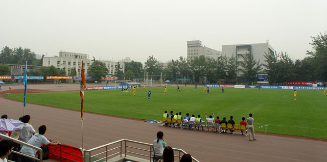 第五屆飛利浦中國大學(xué)生足球聯(lián)賽總決賽我校足球隊(duì)的首場比賽5日在中國人民大學(xué)上演。主場作戰(zhàn)的中國人民大學(xué)在下半場20分鐘時(shí)曾憑借一個(gè)點(diǎn)球領(lǐng)先了一刻鐘,但我校足球隊(duì)頑強(qiáng)拼搏,在下半場依靠第35分鐘7號(hào)李爽和40分鐘3號(hào)姚遠(yuǎn)的連續(xù)入球反敗為勝,取得了關(guān)鍵的首場比賽的勝利,目前小組積分名列第一。