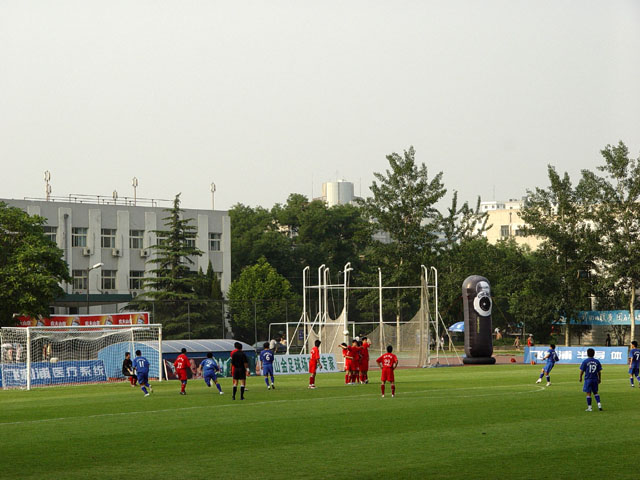 球向著同濟大學守門員守的半邊直飛而去,直接任意球破門,北京理工大學在終場前扳回一球,為三屆冠軍挽回一點面子。