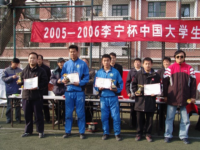 3月26日下午,在中國人民大學體育場進行了“2005-2006李寧杯中國大學生五人制足球聯賽”北京賽區的決賽,我校足球隊頑強拼搏,不畏強敵,以1:0戰勝清華大學隊,奪得北京賽區冠軍。