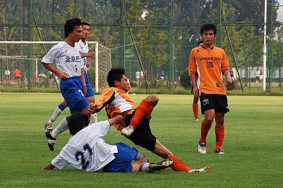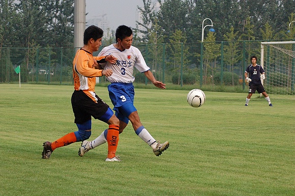 畢竟北京巴士隊是支比較專業的職業球隊,體力比較充分,比賽經驗也比較豐富,在比賽的最后十幾分鐘內,幾乎全線壓上至我方禁區,給我方的防守造成了極大的壓力,好在隊員全力以赴進行密集防守,加上守門員王毅的精彩撲救,才力保城門不失,將1:0的比分保持到了終場。