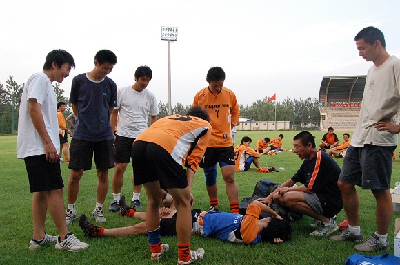 在與對方的奮力拼搶中,我方先后有數名隊員抽筋倒地,這一方面反映了隊員的拼搏精神難能可貴,但從另一方面也暴露了隊員體力不足的問題。