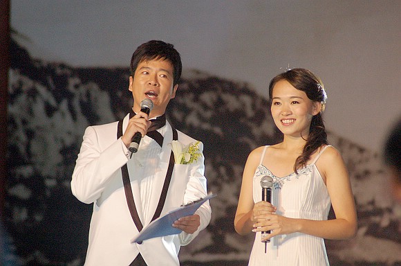 畢業(yè)校友張彬和大一新生聯(lián)袂主持。