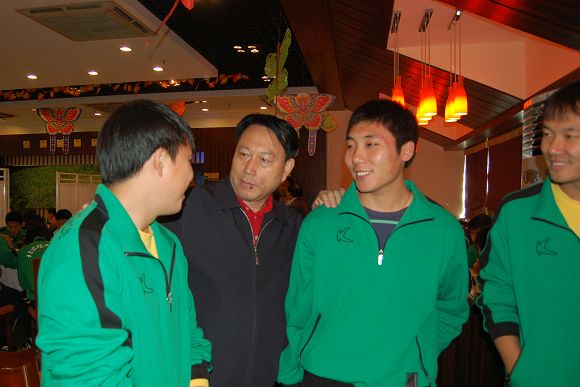 李志祥常務副校長在詢問足球隊員們的生活和學習情況。