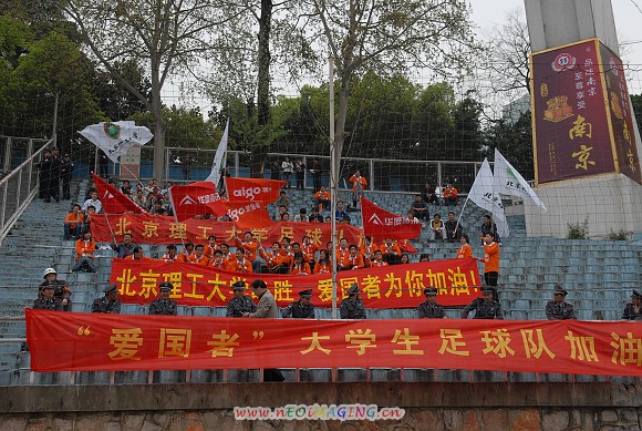 由南京理工大學(xué)的同學(xué)們和華旗集團南京分公司的球迷聯(lián)手組成的“愛國者大學(xué)生”啦啦隊氣勢絲毫不輸主場球迷方陣。