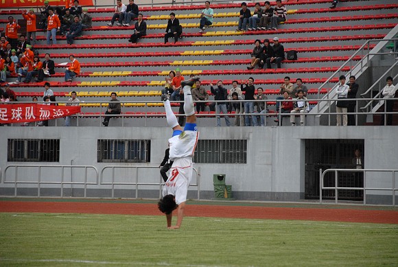 梅開二度的于飛興奮的在場上翻起了跟斗。