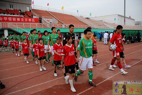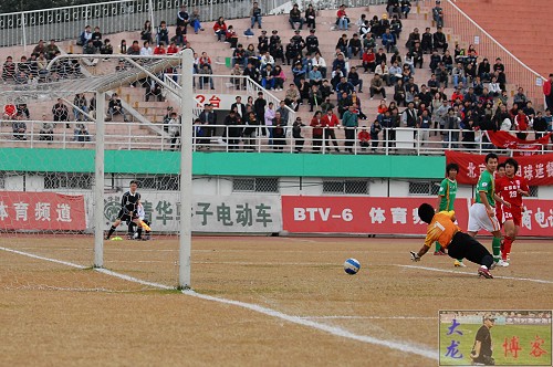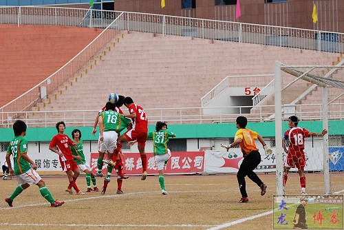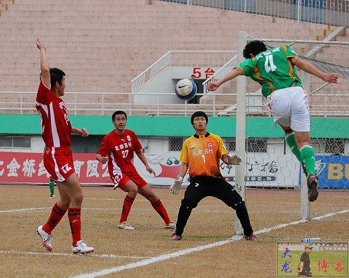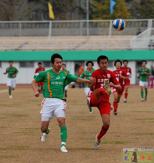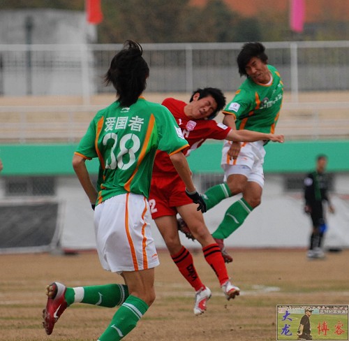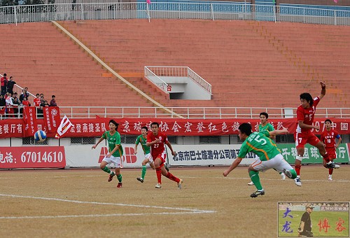 北京宏登隊有些著急,加強了逼搶,第19分鐘,北京宏登獲得角球,開球弧度很大,落點被愛國者隊員得到,并將球大腳開出。第21分鐘,宏登隊又獲得定位球,球吊入禁區,被愛國者后衛5號康思貝頂出,將球破壞掉;第24分鐘,宏登隊加強了反擊攻勢,但在愛國者的牢牢防守下,似乎沒有什么很好的辦法。第27分鐘,愛國者39號劉在熏帶球,宏登隊28號陸鳴犯規,愛國者獲得任意球,大腳開出卻出現偏差;