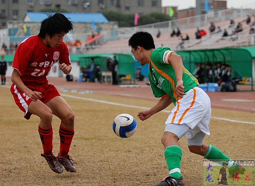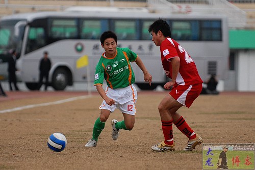 下午兩點,比賽在北京宏登隊主場正式開始。開場剛五分鐘,雙方便積極拼搶,展開了對攻之勢。第7分鐘,愛國者獲得任意球,8號袁微將球吊入禁區,卻被對方門將擋出;第8分鐘,愛國者17號張樹后場斷球,想要傳給袁微,被對方后衛破壞,出了底線;第9分中,18號楊思遠中場斷球,傳給金俊值,球出了邊線;比賽進行不到十分鐘,雙方逼搶積極,出現白熱化狀態,身為大學生隊的愛國者在場面上絲毫不輸于職業球隊,反而更具優勢。