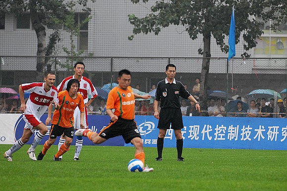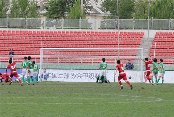 同樣在客場與哈爾濱毅騰的比賽中,面對這個去年曾經三次交手兩勝一平的“青年軍”,北理工在占盡場上優勢的情況下,卻由于場地泥濘等原因再次輸在一個任意球下,而這個任意球的位置、入球方式與上一場的那個致命任意球幾乎有著驚人的相似,難怪金指在賽后對隊員們在同一個“坑”里跌倒而大發雷霆。