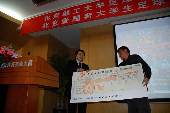 北京愛國者大學生足球隊主教練金志揚教授向大家匯報了足球隊參加體測和選拔新隊員的情況。金志揚教授指出:“每年足協都有五、六百名球員上榜,其中三分之二的人都會下崗。而這之中他們絕大部分的人都是20歲左右的年輕人。如果失去了足球,那么對他們來說是一件很難面對的事情。他們不得不被社會所淘汰,因為自己除了足球其他什么都不成。像鄒春蘭艾冬梅這樣的事情存在很多,只不過他們取得過世界好的成績而被關注。在這樣的情況下,我們北京理工大學可以向這樣的掛牌球員敞開大門,他們可以接受北理工的遠程教育以及在繼續教育學院內邊學習、邊踢球。當然,這只能保證你繼續你的足球事業,對于工資獎金北理工無法提供。”今年將繼續把足球隊拉到韓國冬訓,在韓國除了可以從訓練和比賽中得到很多收益之外,還使得所有隊員感受到韓國體育文化的熏陶。近期他還將到朝鮮訪問,并爭取尋求朝鮮外援加盟的可能,金指最后感謝社會各界對北京理工大學足球隊一貫的大力支持與幫助。