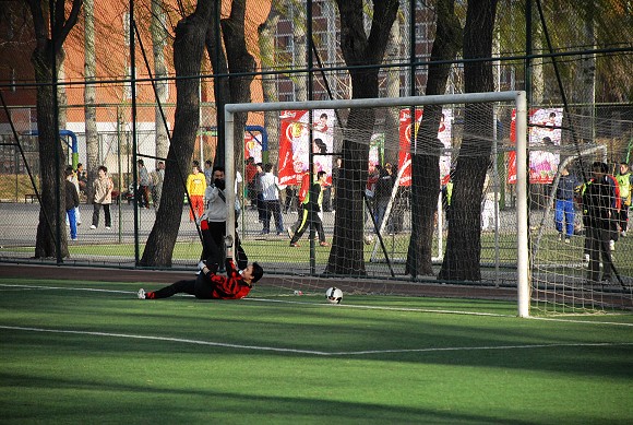 果然,下半場開始后不久,北理工隊的李東昊又一次通過禁區(qū)前的勁射將比分擴大為3:0,人大隊甚至因此更換了守門員。