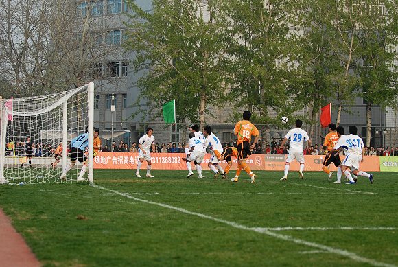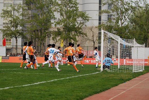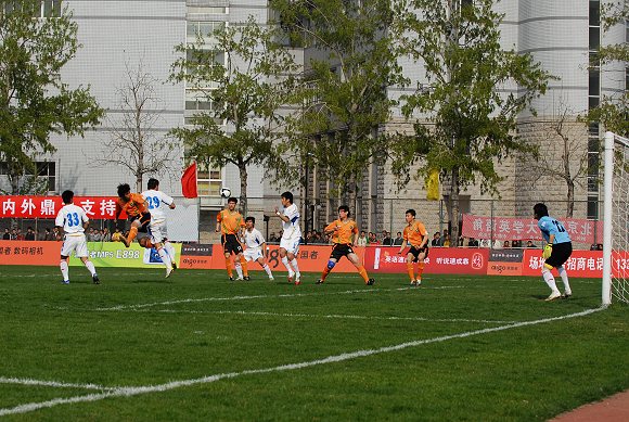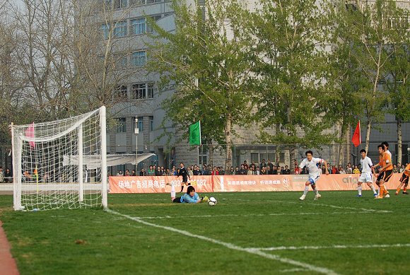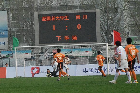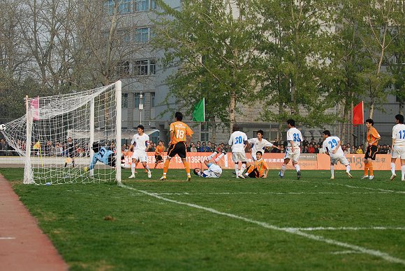 比賽剛剛開始,北京愛國者大學生隊在場上拼搶的十分積極,但是四川隊卻率先獲得攻門機會。四川隊的10號曾其祥在愛國者隊的大禁區前迎球怒射,皮球被門將劉天鑫穩穩抱住,并沒有形成什么威脅。
