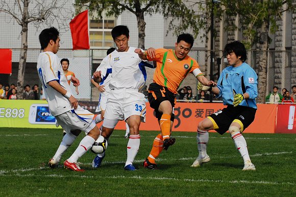 5分鐘后,北京愛國者隊再次獲得機會,皮球帶到前場,11號前鋒李東昊在大禁區前拿球,停球后直接選擇轉向球門上角,可惜腳法并沒有掌握好浪費了一次絕佳的機會。顯然在中場休息時曹限東對于球隊的進攻端做了很好的部署。下半時北京愛國者隊的進攻十分出色。隨后愛國者隊再獲機會。通過簡單的長傳,11號李東昊在大禁區前頭球回做,跟進的8號隊長袁微迎球怒射,皮球滑門而出。