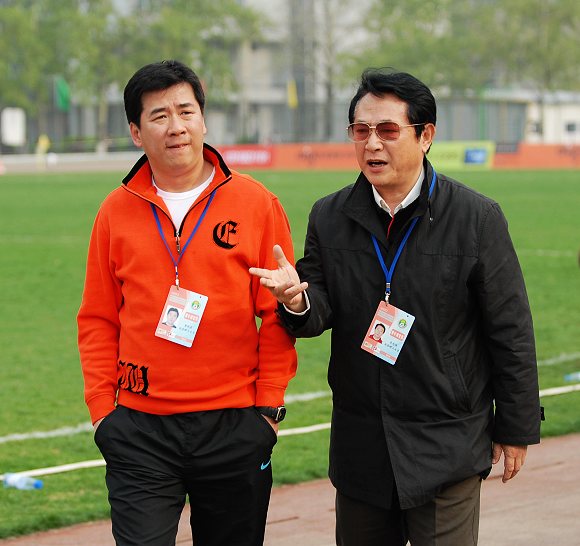 中場休息時老帥金志揚和主教練曹限東在進行交流。