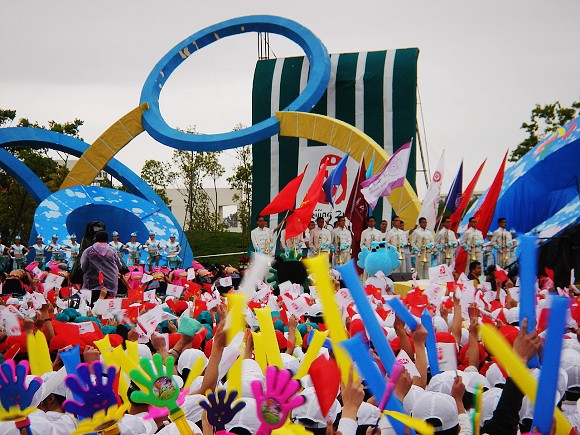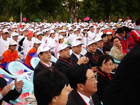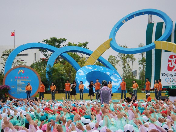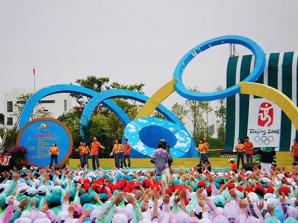 來自全國20多所高校的800余名參演大學生與現場萬余名大學生觀眾歡聚一堂,為即將到來的北京奧運會加油助威。
