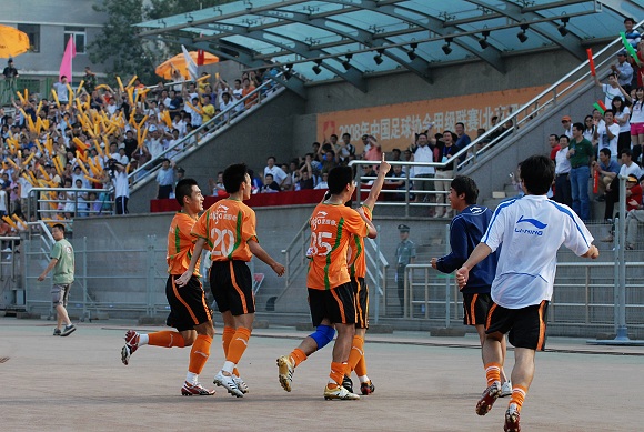 作為06,07的兩屆中乙聯賽的冠軍,北京理工大學隊和上海東亞隊不僅各自頭頂著學生軍和童子軍的光榮稱號,更是象征著金志揚和徐根寶兩位主帥打法衣缽的傳承者。但其實從各自打造新軍開始,兩位老帥似乎像是互通好了一樣,開始了打法角色的互換。眾所周知,金志揚在北京國安時期賴以成名的正是“小快靈”的獨特打法,這種打法不僅幫助北京國安隊連續取得96,97兩屆足協杯的冠軍,而且在當時屢屢戰勝盛極一時的世界強隊,讓國人刮目相看。而徐根寶在執教上海申花隊期間開創的“搶逼圍”的戰術更是幫助他們拿下95年的聯賽冠軍。但委身中甲的兩位老帥在率隊期間卻并沒有秉承打法。
