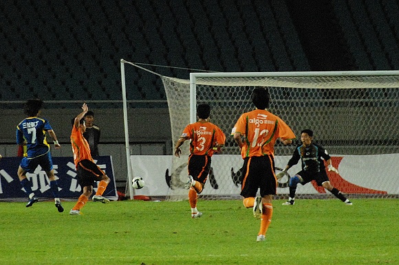 或許是優勢來的如此的輕松,讓舜天國信隊隊員多少有些松懈。比賽進行到第32分鐘,先是中場傳球失誤,接著門將關震又貿然出擊沒能及時回位,楊思源幾乎是打了一個空門,1:2。