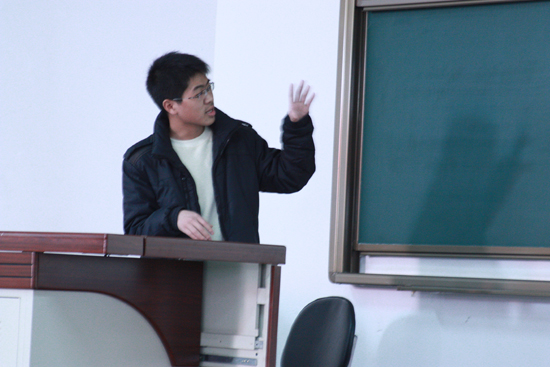 陳杰浩老師向全體學(xué)生詳細(xì)地介紹學(xué)院目前關(guān)于學(xué)生科技創(chuàng)新規(guī)劃、學(xué)生培養(yǎng)方法、目前建設(shè)情況、2008年獲獎(jiǎng)成果、2009年的重點(diǎn)規(guī)劃。