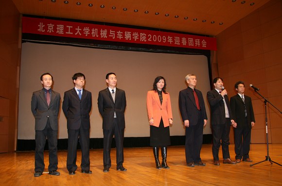2009年1月14日,機械與車輛學院2009年迎春團拜會隆重舉行。副校長孫逢春、全院在職教工、離退休老教師和學生代表歡聚一堂,對2008年度學院優秀集體及個人進行表彰與總結,并開展全院2009迎新春團拜活動。常務副院長唐水源主持總結迎春團拜會。