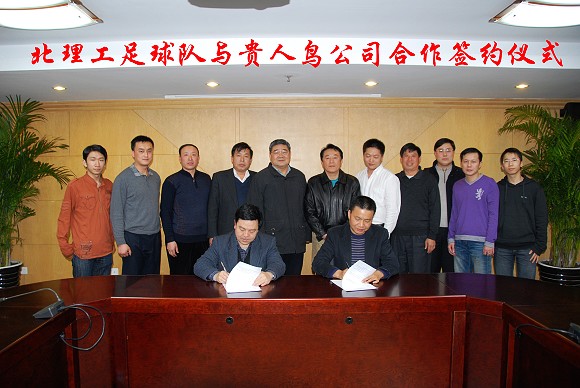 2月27日,貴人鳥(中國)有限公司總裁林天福一行蒞臨北京理工大學,雙方就貴人鳥(中國)有限公司冠名北京理工大學足球隊參加2009年中國足球甲級聯賽并同時提供全套比賽和訓練裝備等事宜簽署了正式協議。