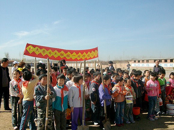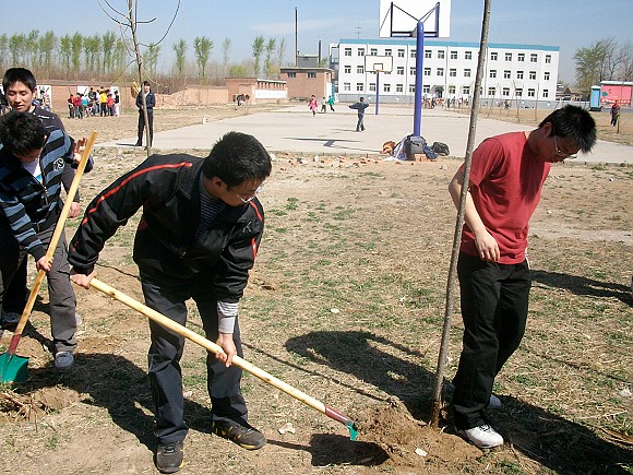 為響應學院關于學習實踐科學發展觀活動的要求,2009年4月6日,北京理工大學理學院本科06級物理系黨支部一行12名黨員來到位于北京市房山區的水碾屯完全小學進行了一次延伸綠色,種植生命的義務植樹活動。
